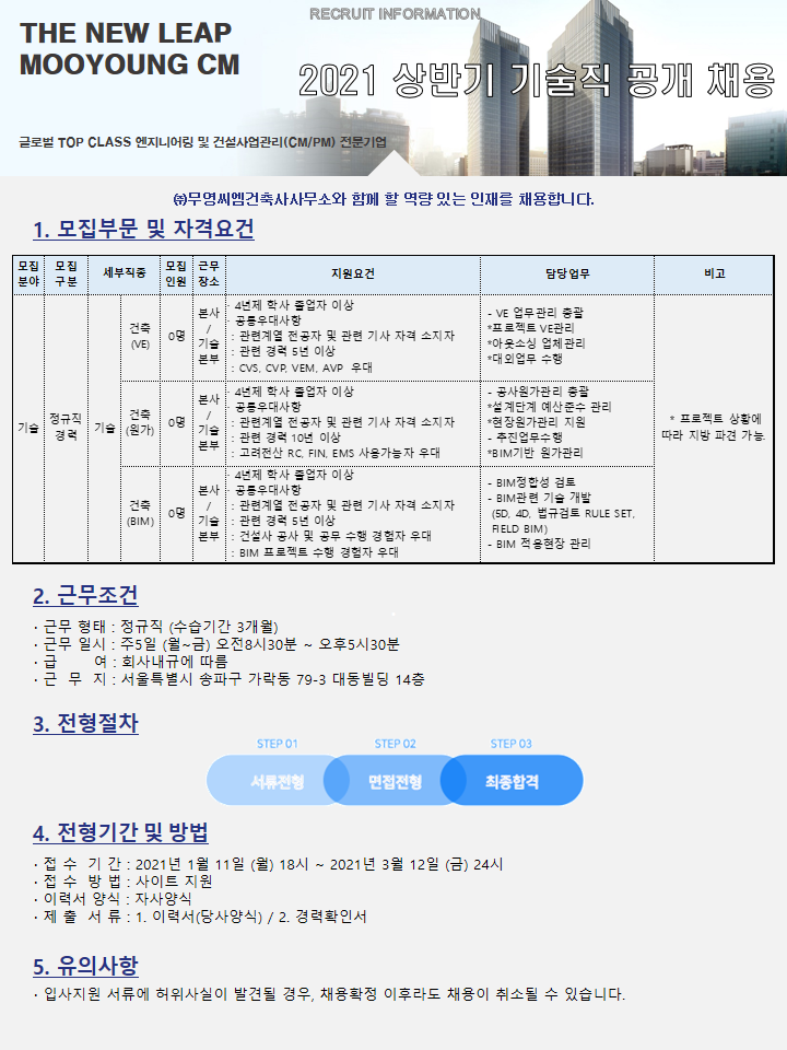 2021 ±â¼úº»ºÎ ¿ø°¡/ VE / BIM °æ·ÂÁ÷ °ø°³Ã¤¿ë °ø°í